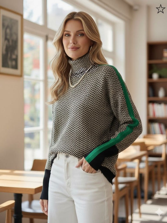 Isabelle Moreau | Women's Chic and Comfortable Patterned Turtleneck Sweater