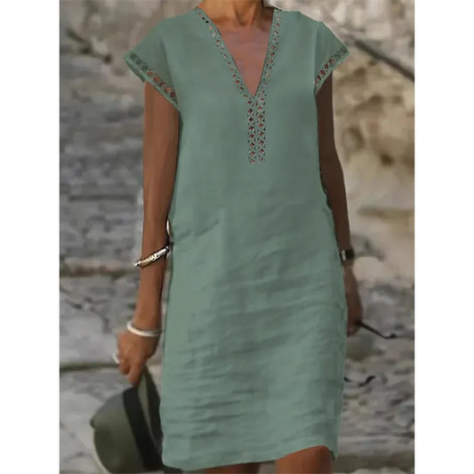 Dress with round neck and lace inset