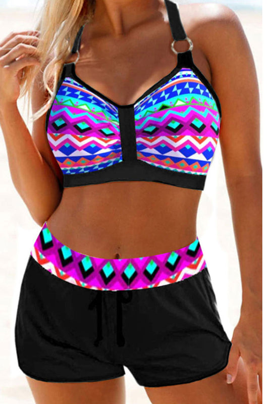 Three-piece swimsuit with leopard ombre print