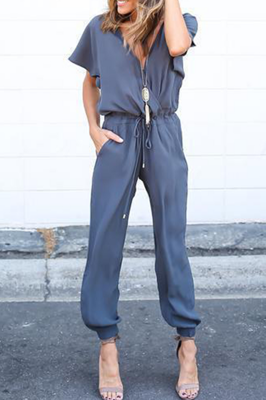 Casual Street Solid Frenulum V Neck Jumpsuits(3 colors)