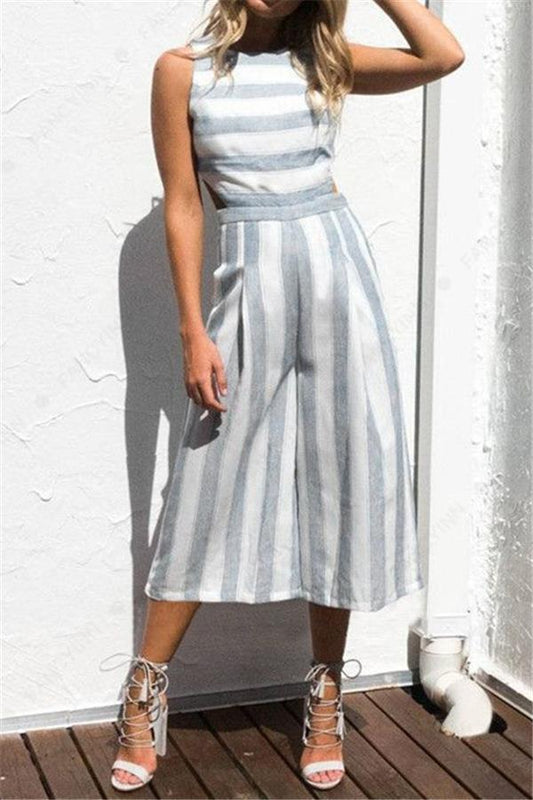 Casual Striped Drawstring Bag Strapless Regular Jumpsuits