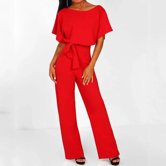 Camellia | Elegant women's jumpsuit with romantic draped belt