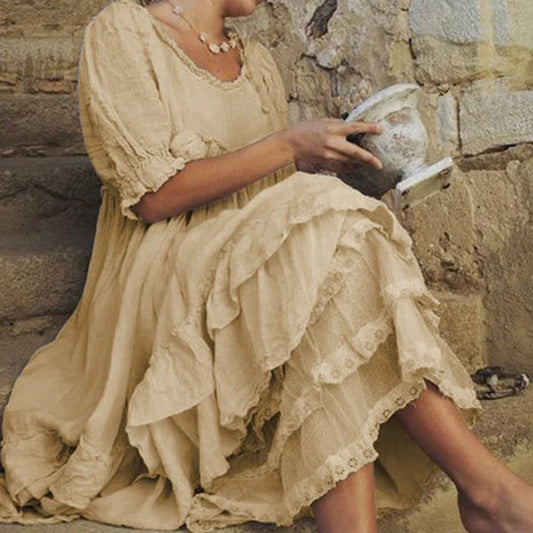 LP | Hailey┃ Vintage long dress with striped neckline.