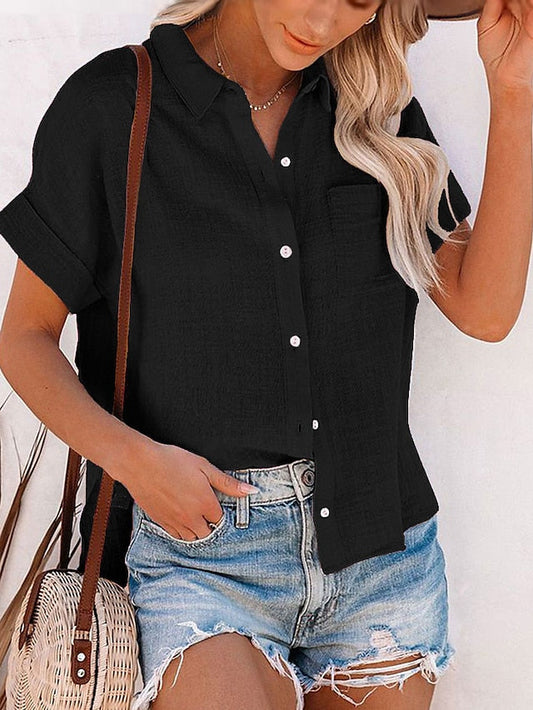 LP | Women Yellow V-neck Print Asymmetrical Blouse Tops Short Sleeve