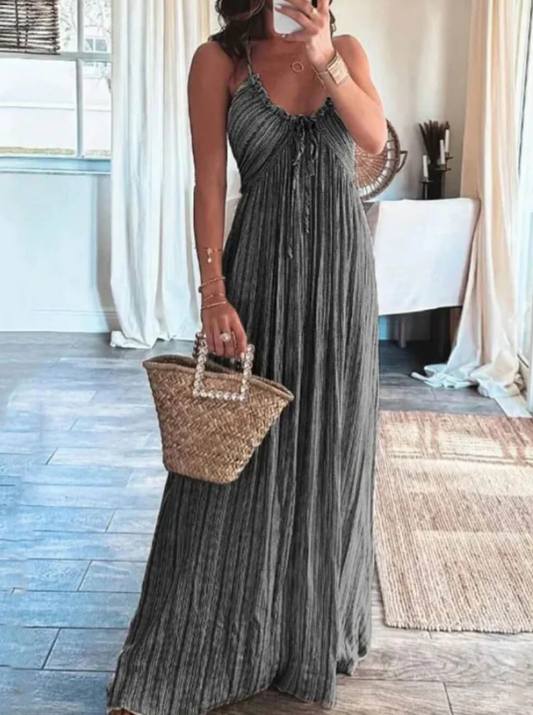 LD Margovil Sleeveless linen maxi dress with V-neck and ruffles