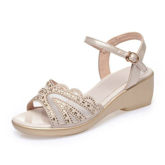 LP | Women Casual Summer Solid Cutout Leather Flat Shoes