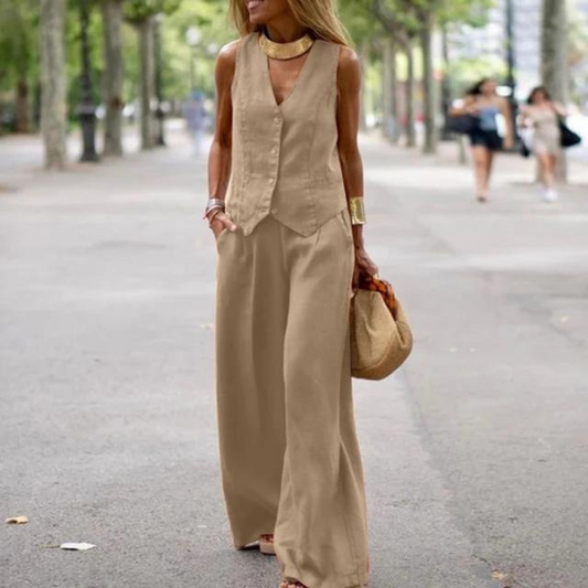 LP | Alice - One-color casual dress with round neckline and 3/4 sleeves