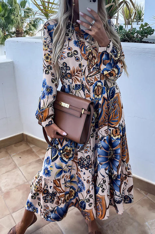 LP | Casual long dress with print, backless round neckline (3 colors)