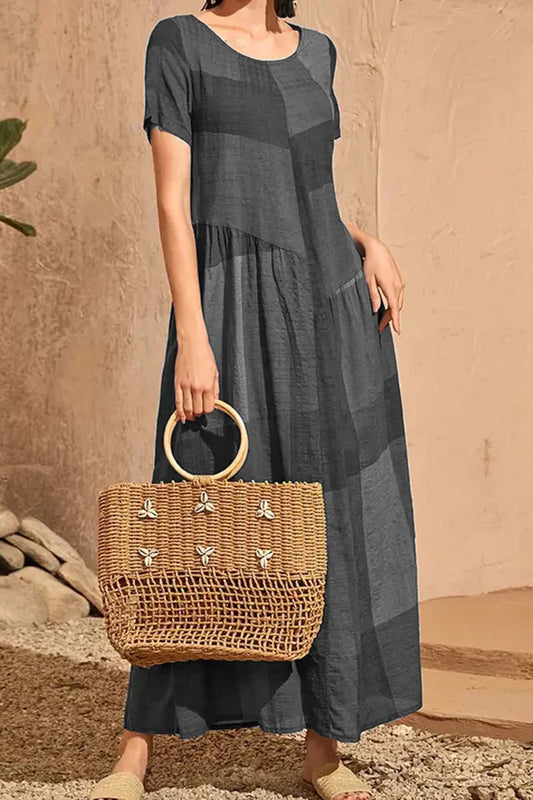 LP | Maxi Vestido Manga Larga Cuello V Estampado Geométrico