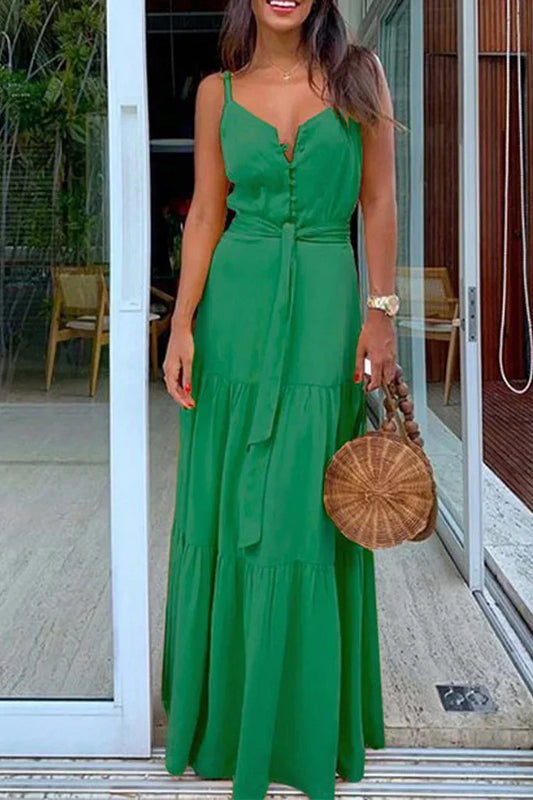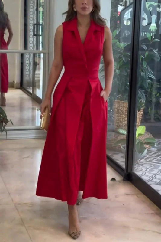 LP | Loose, simple, one-color, sleeveless, V-back long dress