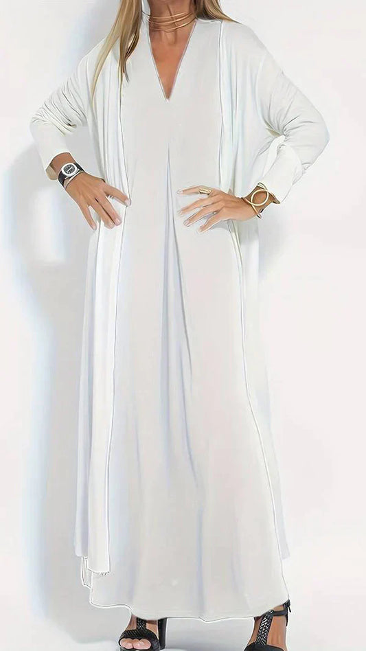 LP | Elegant dress with vintage print, v-neck and long sleeves