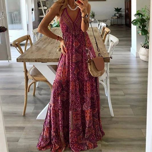 Mc | Joelina -Bohemian V-neck dress with pleated neckline