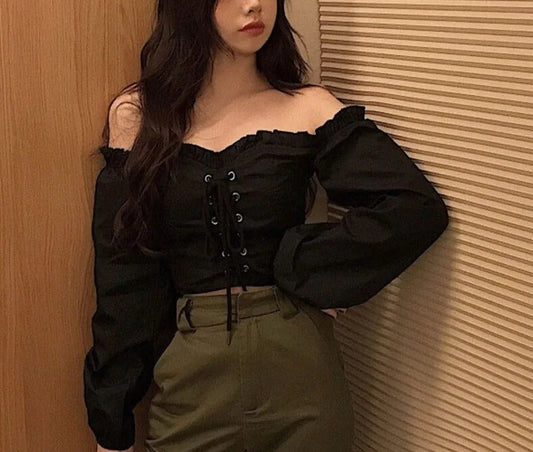 Paloma - Blouse with puffed sleeves and carmen neckline