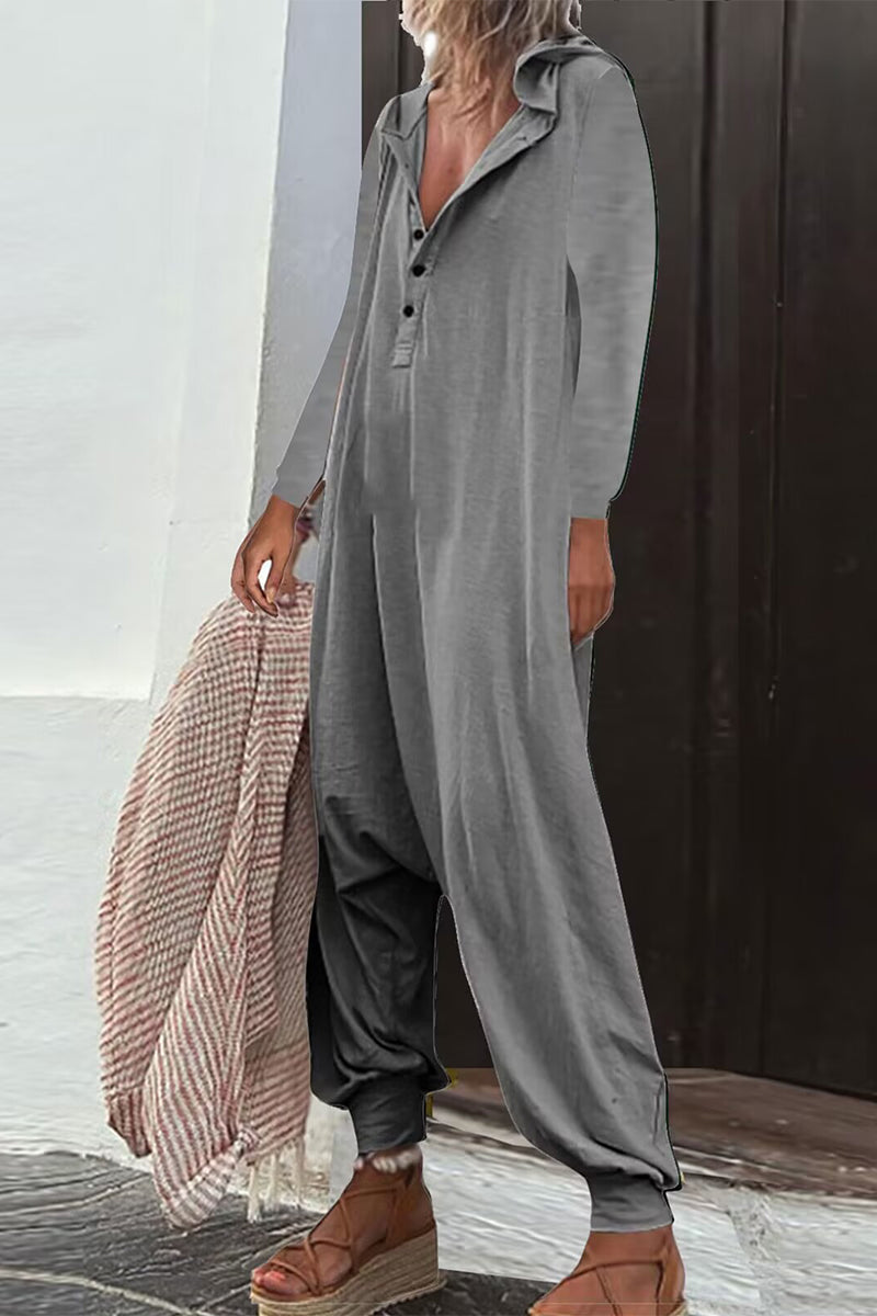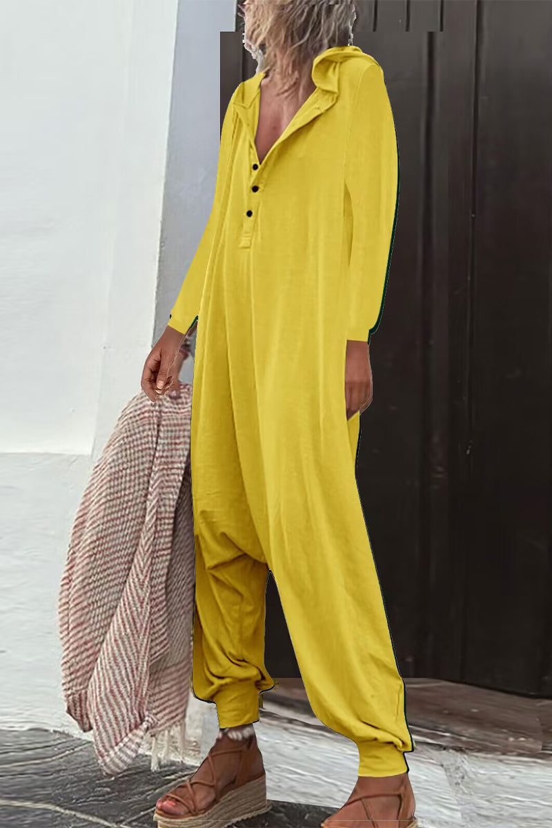 Casual Solid Buttons Hooded Collar Loose Jumpsuits (8 Colors)