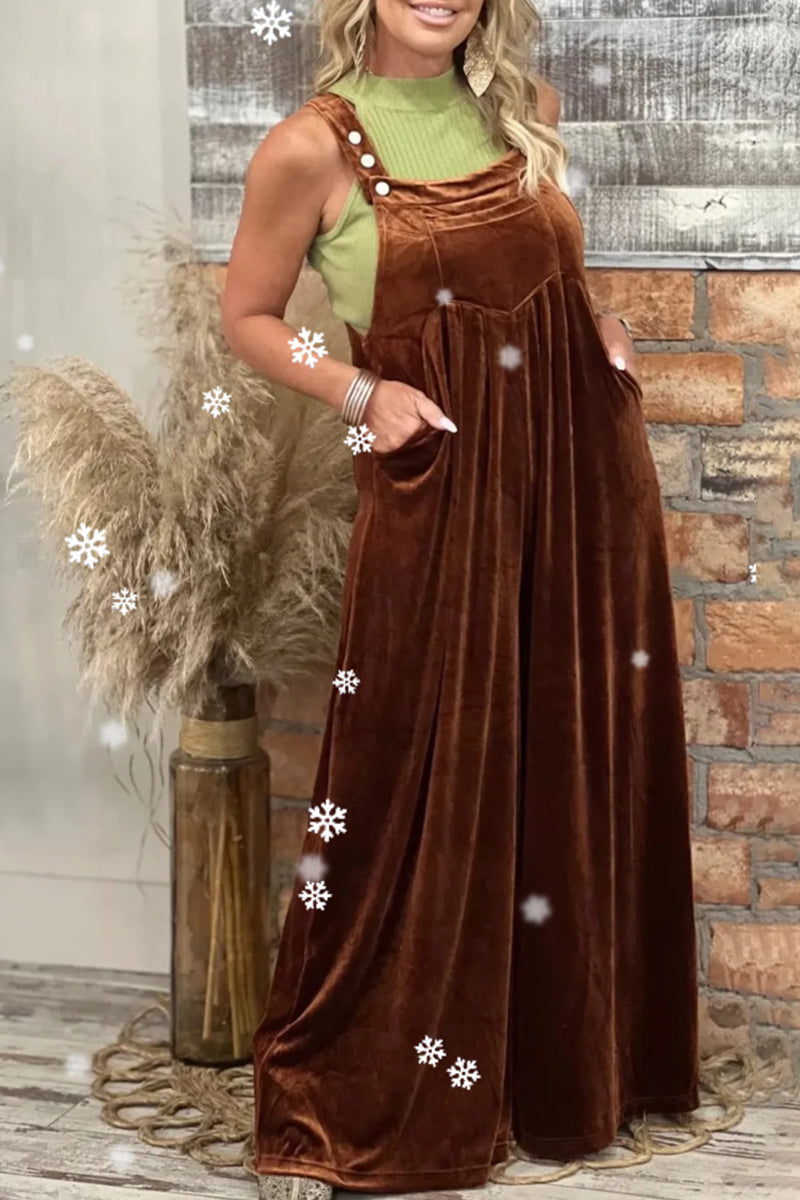 Casual Solid Pocket Pleated Square-Collar Loose Jumpsuits