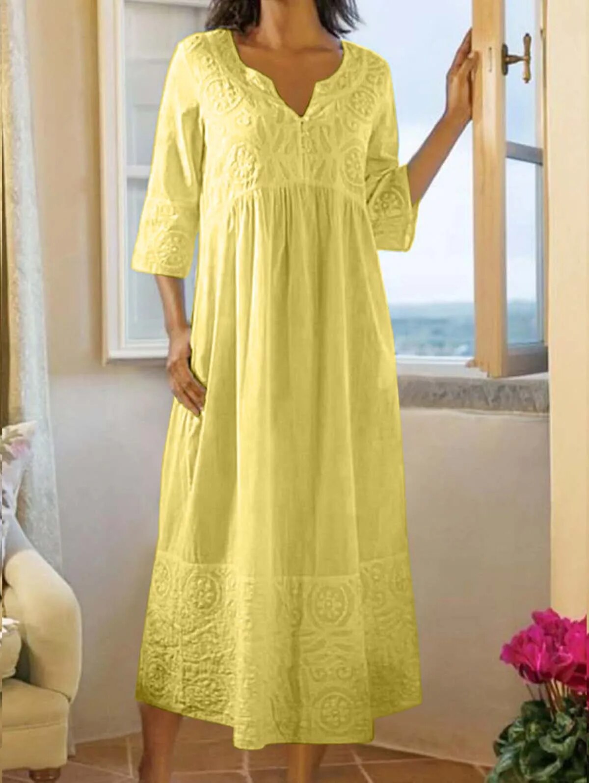 Mc | Cotton-and-linen duster dress