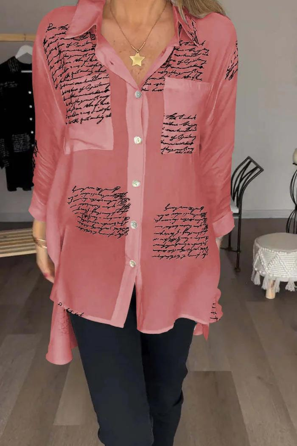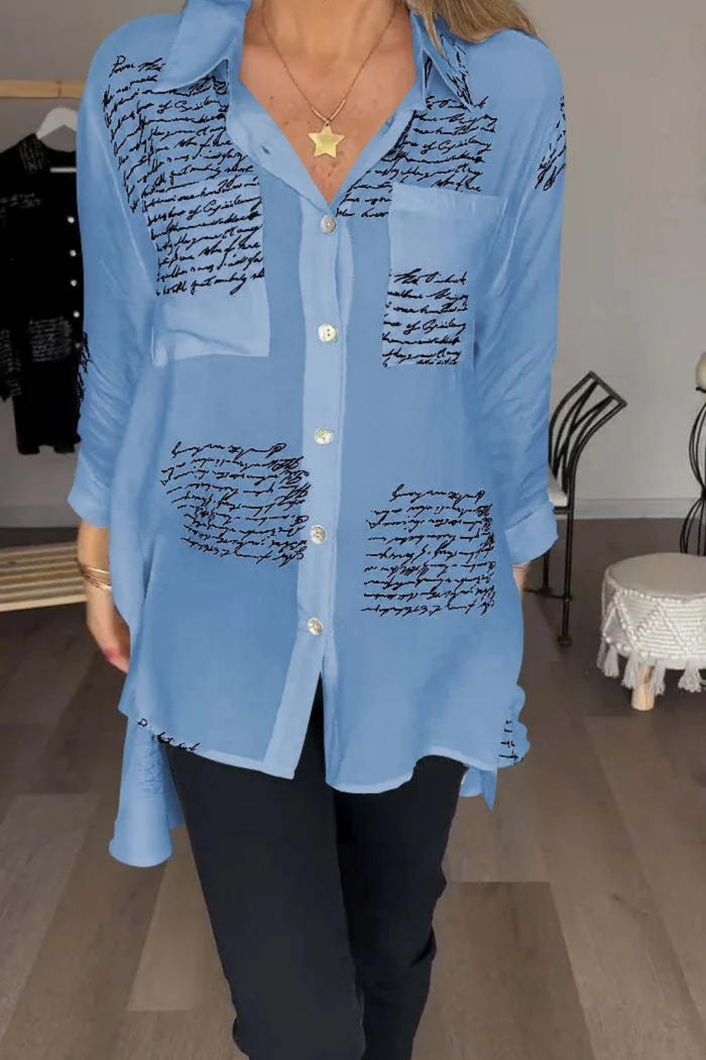 Het unieke letterdruk-design geeft de Lucy Blouse een vleugje individualiteit en trendy uitstraling, waardoor het een opvallend onderdeel wordt van elke outfit. De reverskraag en getailleerde snit stralen elegantie uit, terwijl de losse pasvorm zorgt voor onbeperkte bewegingsvrijheid en een flatterend silhouet.